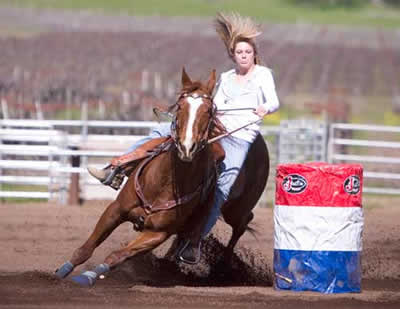 competes in barrel racing, pole bending, calf roping, goat tying